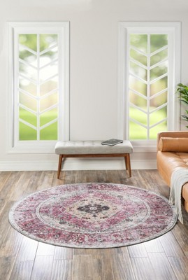 JONATHAN Y Ethan Modern Flatweave Solid Pink 6 ft. Round Indoor/Outdoor Area Rug, Non-Shedding, Easy-Clean, Durable Synthetic Fibers