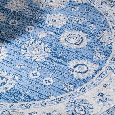 - The shades of gray and blue give this rug depth while remaining a versatile classic
