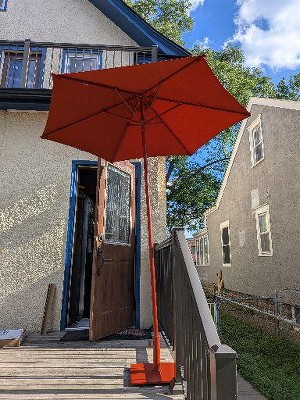 Good size for the umbrella if you’re covering a small space. The button to push the umbrella up and down is a little bit hard if you have arthritis.