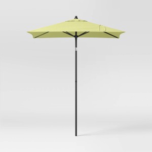 Equip your outdoor space for bright sunny days with this Square Outdoor Patio Market Umbrella with Black Pole from Threshold™. This outdoor umbrella is a must-have addition to your patio, deck, backyard or garden decor. Made of fade-resistant fabric canopy for lasting outdoor use, its solid color makes it easy to coordinate with a range of outdoor settings, and it's equipped with a push-up lift system that makes it easy to raise and lower the canopy along with push-button tilt for more shading angles.