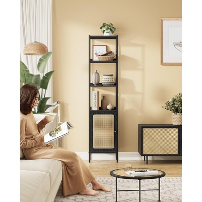 6 Tier Industrial Bookshelf, Tall Narrow Bookcase with 2 Fabric Drawers, Metal Frame Book Shelf, Freestanding Display Shelf Storage Organizer