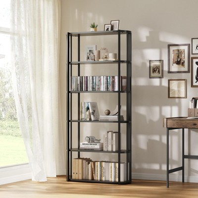 6-Tier Industrial Wooden Bookshelf, 71 Inch Tall Freestanding Book Shelf With Metal Frame, Large Open Bookcase Storage Organizer Shelving
