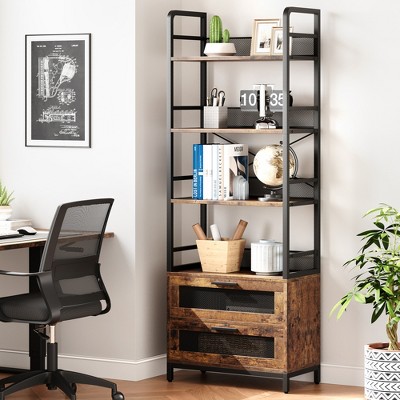 6 Tiers Book Shelf, Home Office Bookshelf Storage Organizer, Vintage Industrial Style Bookcase, Free Standing Storage Shelving Unit, Black