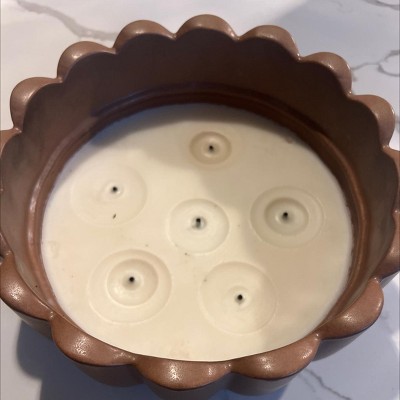 I absolutely love the smell of these candles. I buy them every year when they come out and I was so excited to see this 6 wick with scalloped edges in the store. However, there is something wrong with the wick that it will no longer burn even though there is plenty of wick and wax left. It is defective, which is a bummer for the cost.