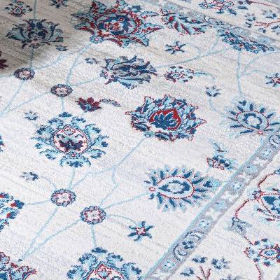 - The shades of gray and blue give this rug depth while remaining a versatile classic