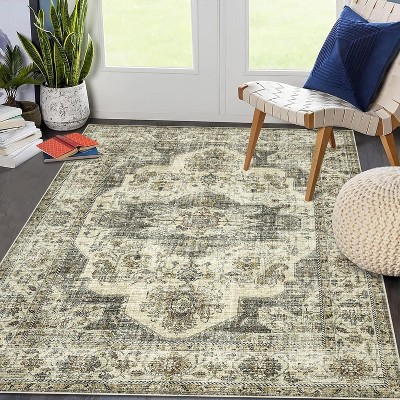 6'x9' Washable Rugs for Living Room, Machine Washable Area Rugs Vintage Carpet Stain-Resistant Mat for Bedroom orange