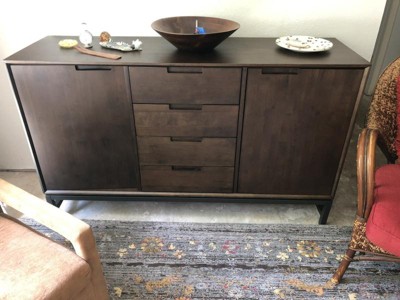 60" Devlin Mid-Century Sideboard with Centre Drawers Walnut Brown - WyndenHall: Hardwood Credenza, Adjustable Shelves
