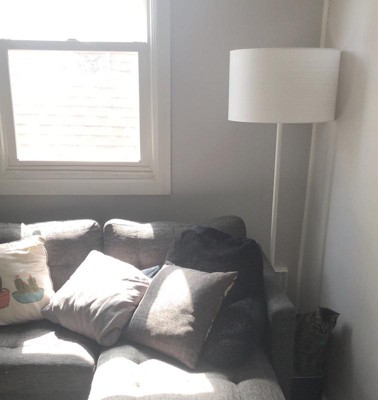 Really like this lamp. It is sleek and contemporary, but the shade adds texture so it is just right.