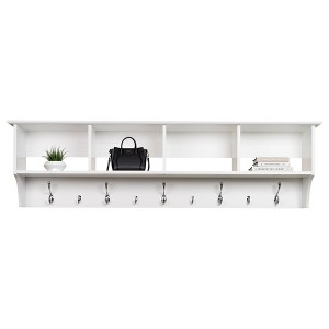 Prepac 60" Wide Hanging Entryway Shelf White: Wall Mounted Storage with 9 Hooks, Laminated Wood Composite