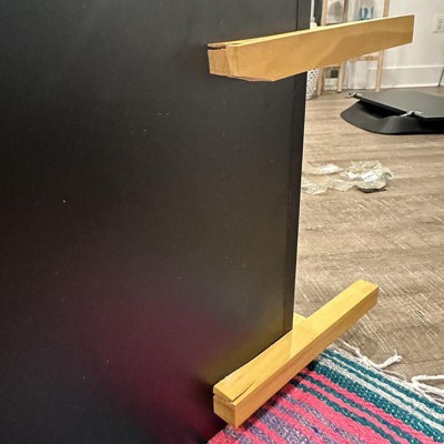 This shelf is cute but be VERY careful when attaching the feet to it- the wood split on 2 of them when I was putting them on. I reported it to customer service and am hoping they can get me replacement feet sent. I get to final steps of putting it together and the base of it splits!