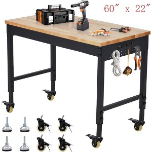 60"x22" Adjustable Height Workbench 2000 LBS Workstation With 9.8FT Cable & Casters