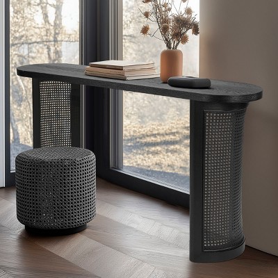 60" Entryway Console Table with Shelf, Natural Ash Veneer Hallway Table with T-Leg Design, Bottom Shelf for Living Room or Foyer - Panipeachy