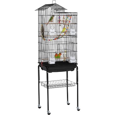 60 inch Large Bird Cage with Rolling Stand, Metal Parrot Cage with Play Top & 4 Stainless Steel Bowls