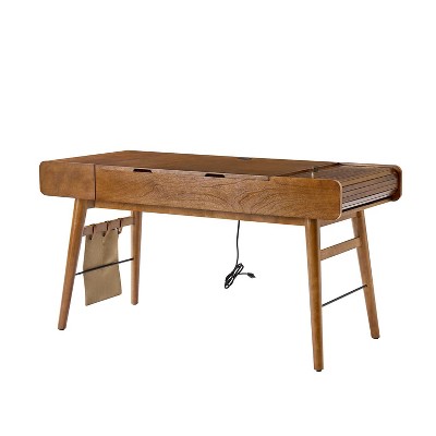 60" Modern Fluted Executive Desk w/ Storage Cabinet, Home Office Desk w/ Drawer & Cabinet, Wooden Fluted Desks Computer Writing Table