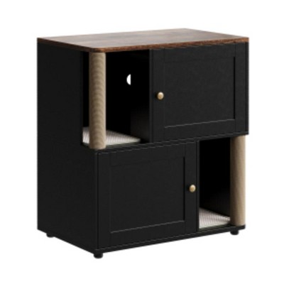60CM Double-Frame Microwave Stand, 20 Square Pipe & PB Board, Black & Black, for Small Kitchen