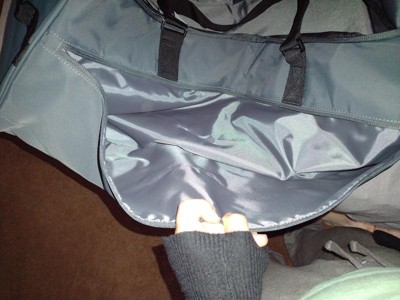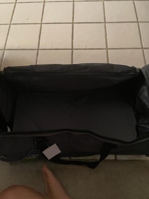 Q: Is this bag foldable (collapsable) ? Also, is there a luggage sleeve trolley built in for this bag>