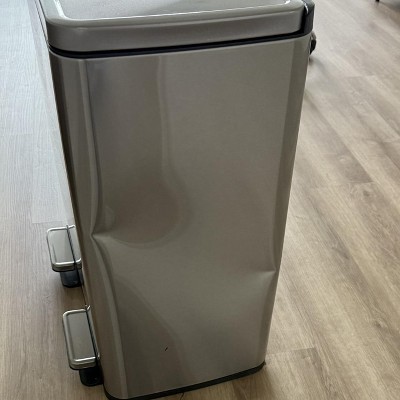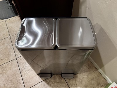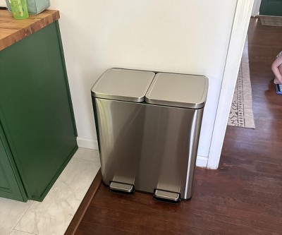 submitted bymarkmywords - 3 years agoA: Hello - Bring function and style to your home with the 60L Stainless Steel Step Trash and Recycle Can from Brightroom™. The practical stainless steel construction makes it a great choice for daily use, while the pedal-operated lids allow for convenient hands-free disposal. With two lidded compartments for easy separation of trash and recycling, this pedal-operated trash can features a sleek design in a glossy metallic finish that adds chic style to your décor, so you won’t mind keeping this functional can on display in the kitchen or mudroom. Brightroom™ started with a simple truth: When you’ve got it together, you feel better. Our versatile designs reveal the possibility in every closet, cupboard and drawer, and work together to create brilliant ways to organize your every da