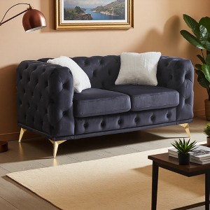 - Sofa fabric: velvet Seat leg material: Metal legs Seat cushion material: foam+spring Frame material: artificial wood Seat frame: wood Pillows included: 2pcs Weight capacity: 500 lbs Package quantity: 2 boxes Installation Required: Required Installation Difficulty: low The cushion is compressed, please wait 72 hours for the cushion to recover. There may be a slight color difference due to different monitors.