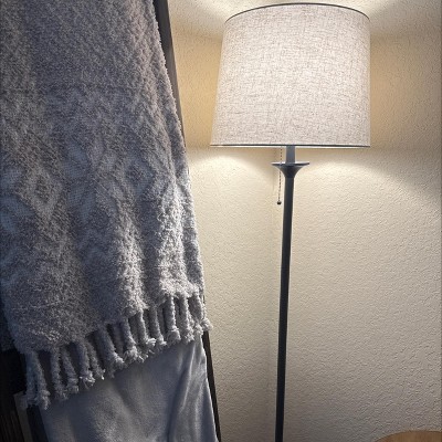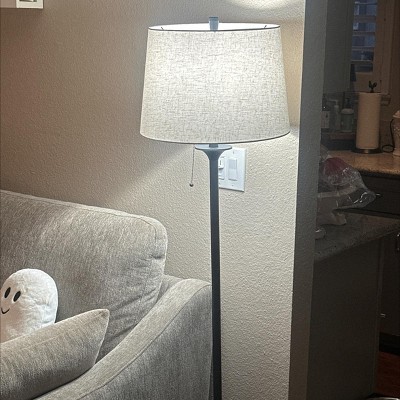 Give your living room or home office a cozy feeling with the Stick Floor Lamp from Threshold™. Standing at a height of 62.5 inches, this freestanding floor lamp has a slender, tubular body atop a turned metal base in a black finish for polished appeal. It's paired with white linen drum-shaped lampshade that diffuses light and bathes your space in a soft glow, and it sports a pull chain for easy on/off convenience. Place it in your living room next to a sofa, beside your desk in the den, or in your entryway alongside the console for functional and aesthetic radiance.
