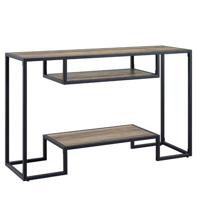 62.9-inch Solid Wood Entryway Sofa Table with Metal Accents and Built-in Shelves, Modern Minimalist Console Table for Living Room and Hallway