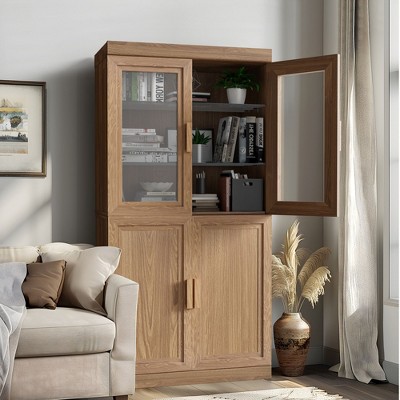 62" Modern Minimalist Wood Grain Decorative Storage Cabinet Combination Cabinet with 6-Story Shelves