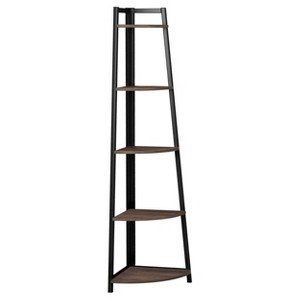 63" Jacksonville 5 Shelf Corner Bookcase with Black Frame Walnut - Coaster: Space-Saving, Laminated, Metal Support