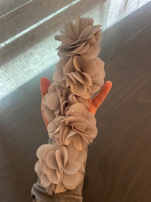 Simple and feminine in all the right ways, Bloom Floral Cuff Solid Window Panel offers a gorgeous one-of-a-kind look to your home. This natural soft hued panel features a tab top finish and beautiful removable floral pins that give your room a decorator’s touch. The lightweight faux linen semi-sheer fabric filters the perfect amount of light into your home, while creating a soft airy feel - for the perfect shabby chic update to your decor. Window panel is machine washable for easy care, while removable floral pins are spot clean only.