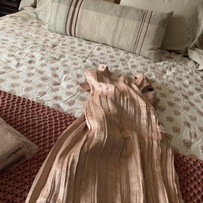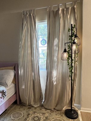 So pretty! The inside of the curtain has a pretty shine to it like a pearl. It keeps some light out. So if you’re looking for coverage from light it’s best to go darker or a black out curtain. I hope this curtain comes in darker shades.
