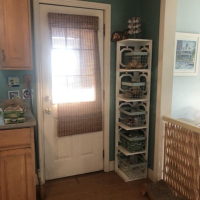 I have a small kitchen & not enough cabinet or counter space… this corner shelf is perfect for some extra storage. It looks great too! Easy assembly. Love it.