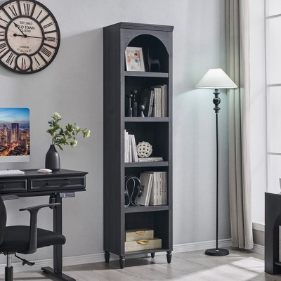 63'' Arched Bookcase with 2 Cross Decor Doors, Farmhouse Pantry Storage Cabinet with Open Display Shelf, for Kitchen, Dining, Living Room, Natural
