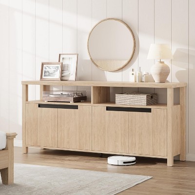 63 Inch TV Stand for TVs up to 70 Inch, Boho Long Entertainment Center with 4 Door and Open Shelf, Television Media Console Table - 1 of 4