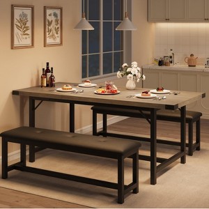 A dual-mode extendable dining set (47"-63") combining industrial-strength steel frame (450lb capacity) with space-efficient design, featuring scratch-proof MDF surface, upholstered benches, and intuitive assembly - perfect for compact homes needing versatile entertaining solutions.