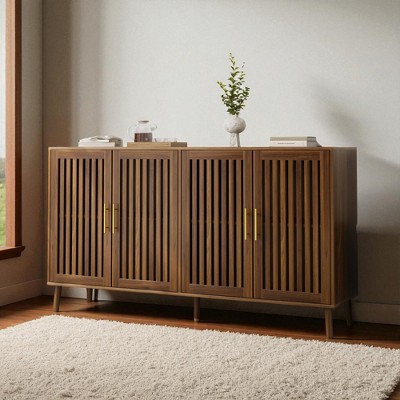 63" MDF Sideboard Buffet Cabinet with Grille-Striped Doors and Large Storage
