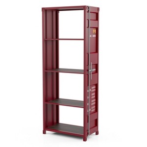 Versatile and practical, this standing bookcase is ideal for contemporary home offices and offers 4-open shelves for ample storage space for files and books. With an industrial style design, complete with a decorative silver metal support rod and product item numbers, this bookcase complements numerous color palettes. Place this bookcase in a contemporary home for a rustic flair.