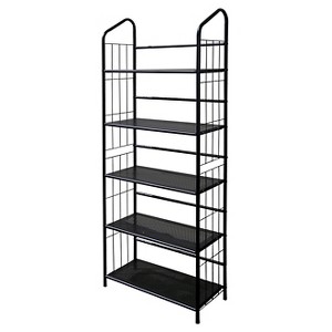 Add style as well as function with this transitional black finish bookshelf. Add valuable bookshelf space to the office, living room or kid’s room. This 5 tier shelving unit is the perfect size. Made of metal in black finish. Very easy assembly is required.