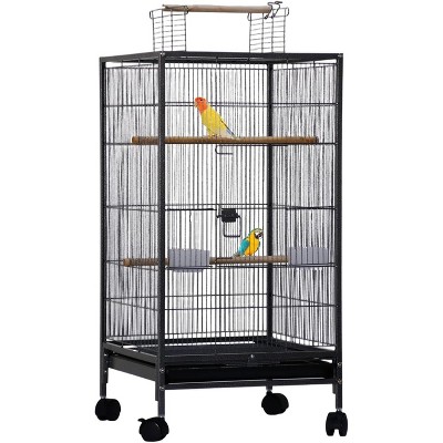 64-inch Black Bird Cage with Rolling Stand ¨C Play Top & Removable Tray for Small/Medium Parrots Conures, Cockatiels, Lovebirds, Parakeets