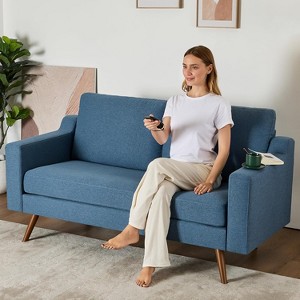 1. Premium Corduroy Upholstery This mid-century modern loveseat features premium green corduroy fabric¡ªsoft, durable, and stain/fade-resistant. Its elegant lines and textured finish add retro charm, perfect for pairing with green tones. A stylish, tactile addition to any space. 2. Extra-Deep Seat & Spring Cushions 20.9" extra-deep seat with spring packs and 18.9" backrest height provide optimal lumbar support. 6.7" thick cushions offer cloud-like comfort, while springs prevent sagging and extend lifespan¡ªideal for unwinding after long days. 3. Ergonomic Armrests Designed for comfort, these armrests offer sturdy support for relaxed seating. Ergonomic design blends style and coziness, making this loveseat an essential rest spot for daily relaxation. 4. Sturdy Solid Wood Frame Crafted from premium solid wood (800 lbs capacity), this loveseat suits daily use¡ªnapping, reading, or coffee-snuggling. Compact design fits small spaces (bedrooms, dorms, apartments), with non-slip leg pads to protect floors. 5. Tool-Free Assembly Two-person setup in 10 mins¡ªno tools needed. Note: cushions arrive compressed; allow 24-48 hrs to fluff (patting helps). Unpack carefully to avoid scratches.