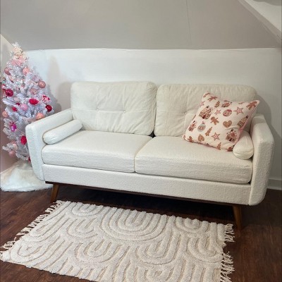 65" Mid Century Modern Loveseat Sofa for Small Spaces, 2 Seater Boucle Upholstered Couch with Button Tufted Design & Wood Legs, Small Couch for Living Room, Bedroom, Office, Apartment
