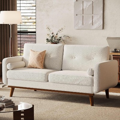 65" Mid Century Modern Loveseat Sofa for Small Spaces, 2 Seater Boucle Upholstered Couch with Button Tufted Design & Wood Legs