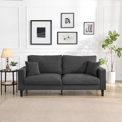 65" Mid Century Modern Loveseat Couch with Wood Legs & Trim for Living Room, Bedroom, Office