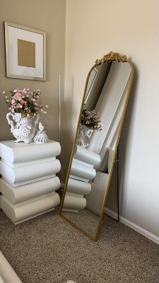 I absolutely love this mirror! It’s even more beautiful in person than in the pictures. The antique gold frame gives it such an elegant, vintage touch and instantly elevated the look of my living room. It’s a perfect size for a full-length view, very sturdy, and the arched design makes it look high-end. For the price, it feels like such a steal I’ve gotten so many compliments on it already. Definitely recommend!