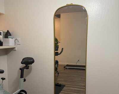 I bought this mirror mainly for trying on outfits, and it exceeded my expectations. The 65"x22" size is perfect for seeing my entire look from head to toe. The reflection is crystal clear with no distortion, and the arched design gives it such a graceful vibe. I’ve tried both leaning it against the wall and hanging it—works beautifully either way.