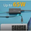 Perfect for a variety of devices, this USB-C power adapter can provide up to 65W of power. Compatible with laptops, tablets, smartphones, and handheld game consoles. Features a power LED light and detachable power cord. The charger supports surge, overcharging, overcurrent, and overheating protection to prevent damage to connected devices and ensure safe charging.