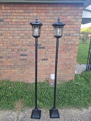 [This review was collected as part of a promotion.] These lampposts look really nice. They have some thoughtful features like a low and high brightness option. They come with batteries and assembly was easy. Husband and I both agree that these posts would be much more versatile with a weighted base so you wouldn’t have to drill it into anything. Love that they are solar powered and we are looking forward to putting them in our yard when it warms up.
