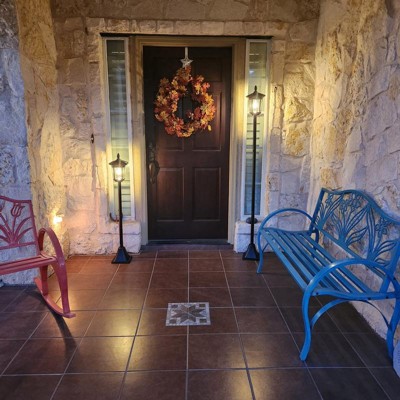 [This review was collected as part of a promotion.] Compliments of Influenster! Westinghouse LED Solar Post lights. Impressive solar light posts that you can design between 4 height options. Shown in my pic is 2’ and 5’ which you can display in a very trendy way. Elevate your entryway so your guests can make their way in without your porch light and the bugs flying around. Add some vines or flowers and make it your own. The composition is a durable stainless steel and plastic with solar charging and the option to turn off and 2 light settings. Beautiful in our porch but will make them the same height. Check it out as you begin your spring decor shopping!