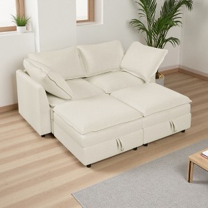 67" Modular Sectional Sofa Bed with Storage Seat & Faux Double-Layer Cushions
