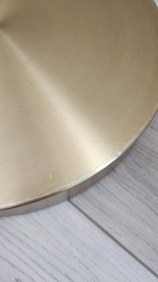 A: The lamp features a stylish brass metal finish that enhances its modern design.