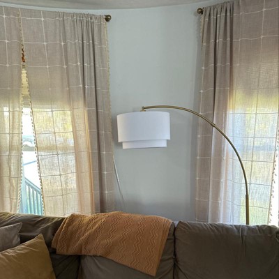68"x41" Knurled Metal Arc Floor Lamp with Tiered Shade Brass - Threshold™: Curved Standing Illumination for Living Room