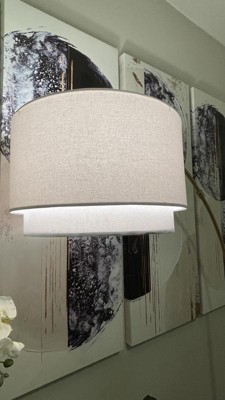 A: The lamp has a unique tiered shade that directs light downward, adding to its modern aesthetic.