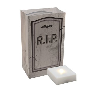 6ct Battery Operated Luminaria LED Kit with Timer: Outdoor & Indoor Novelty Path Lights, Halloween Decor, Gray